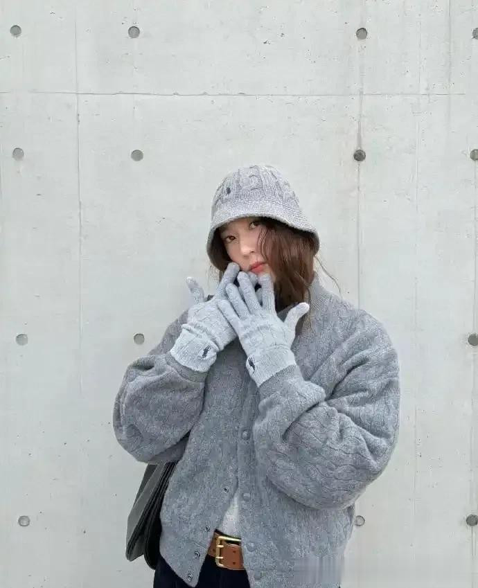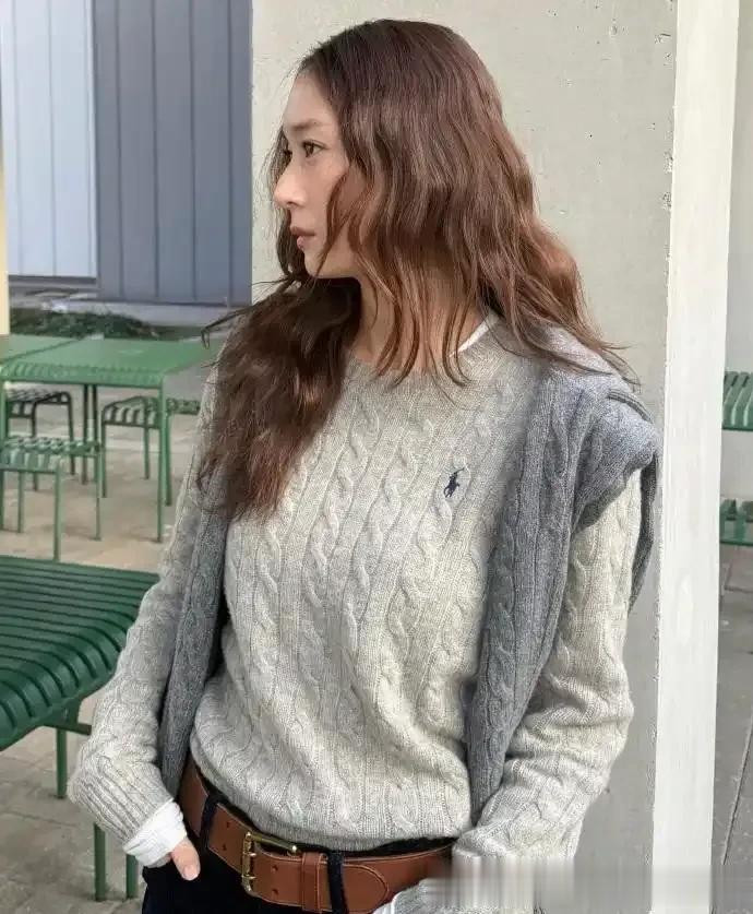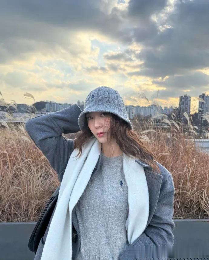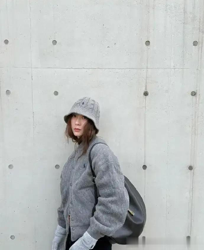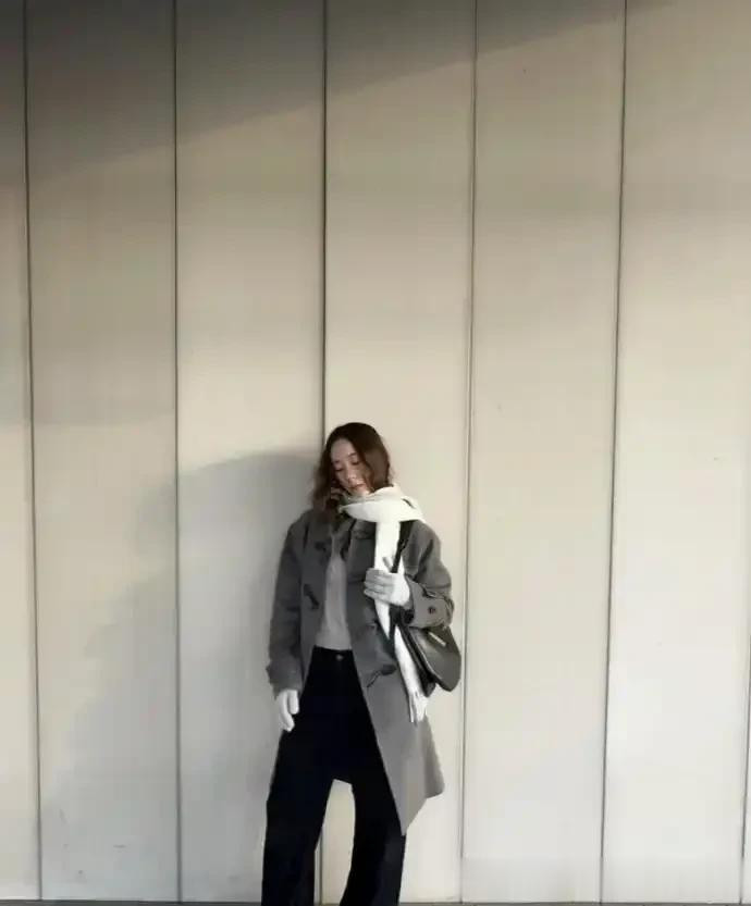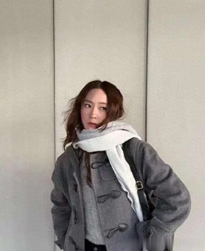 郑秀晶带火灰色“老钱风”, 灰色羊角扣大衣搭针织衫, 时髦又高级